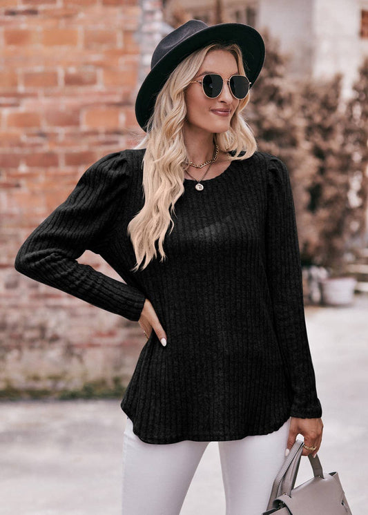 Soft Ribbed Knit Puff Sleeve Top