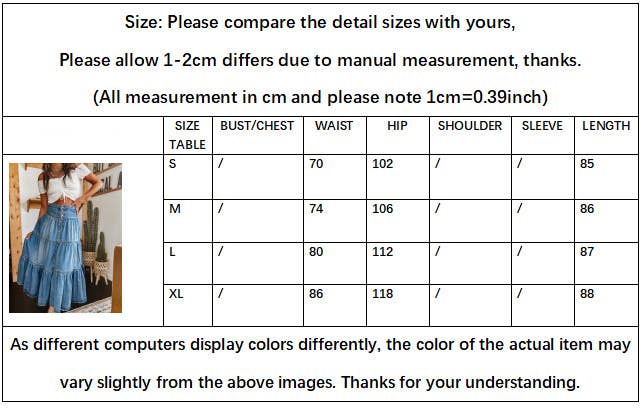 Long Denim Boho Skirt. Body Size: Missy. Pattern: Solid. Style: Tiered. Fabric: Cotton.