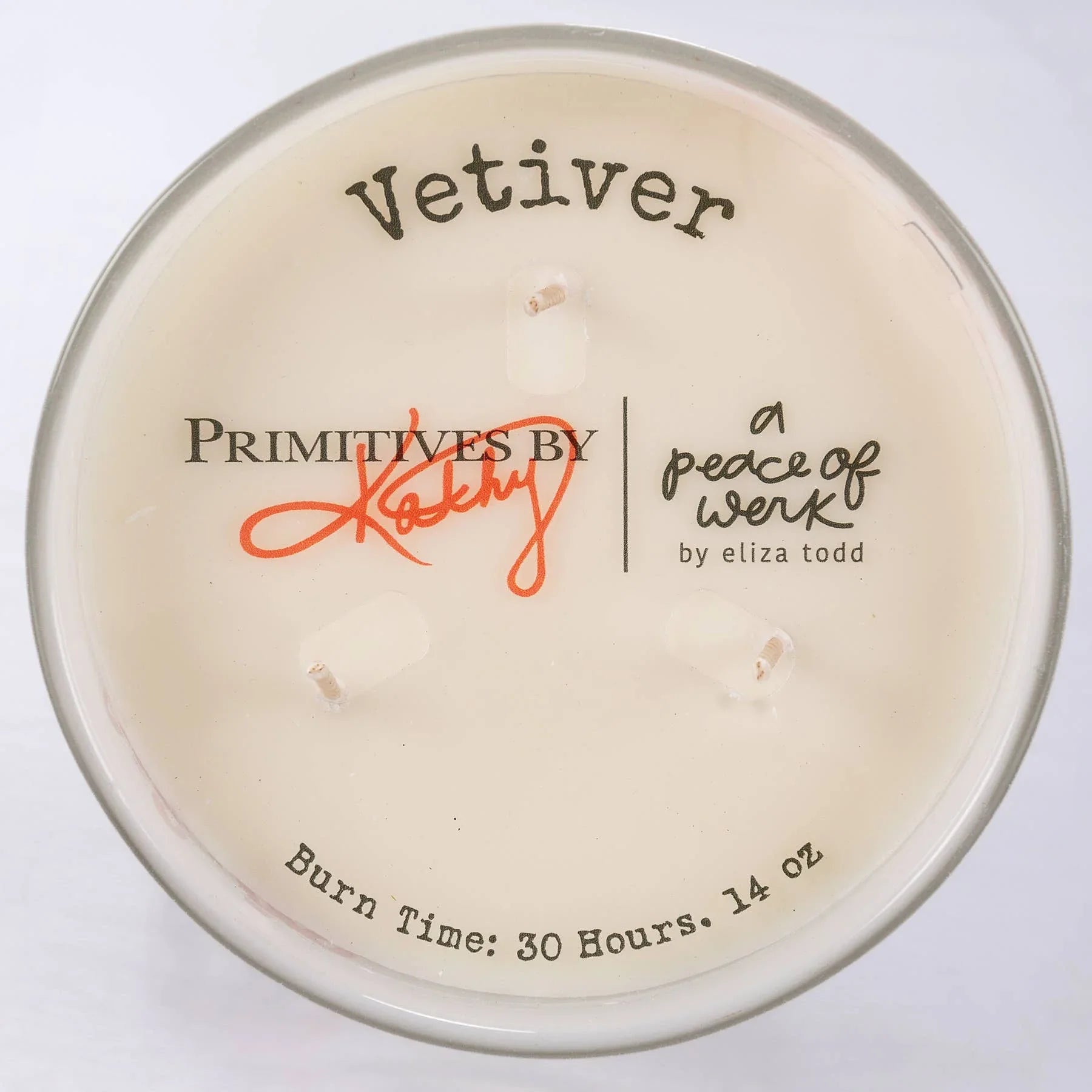 A frosted glass vessel holds this soy-based wax candle featuring a refreshing vetiver scent, an inspirational "Choose Joy" sentiment, and colorful rainbow and floral designs. This 14 oz. candle makes a perfect gift. Our Choose Joy jar candle contains three fabric wicks for a total of 30 hours of burn time. Includes a plastic wax cover for protection and a polished look.