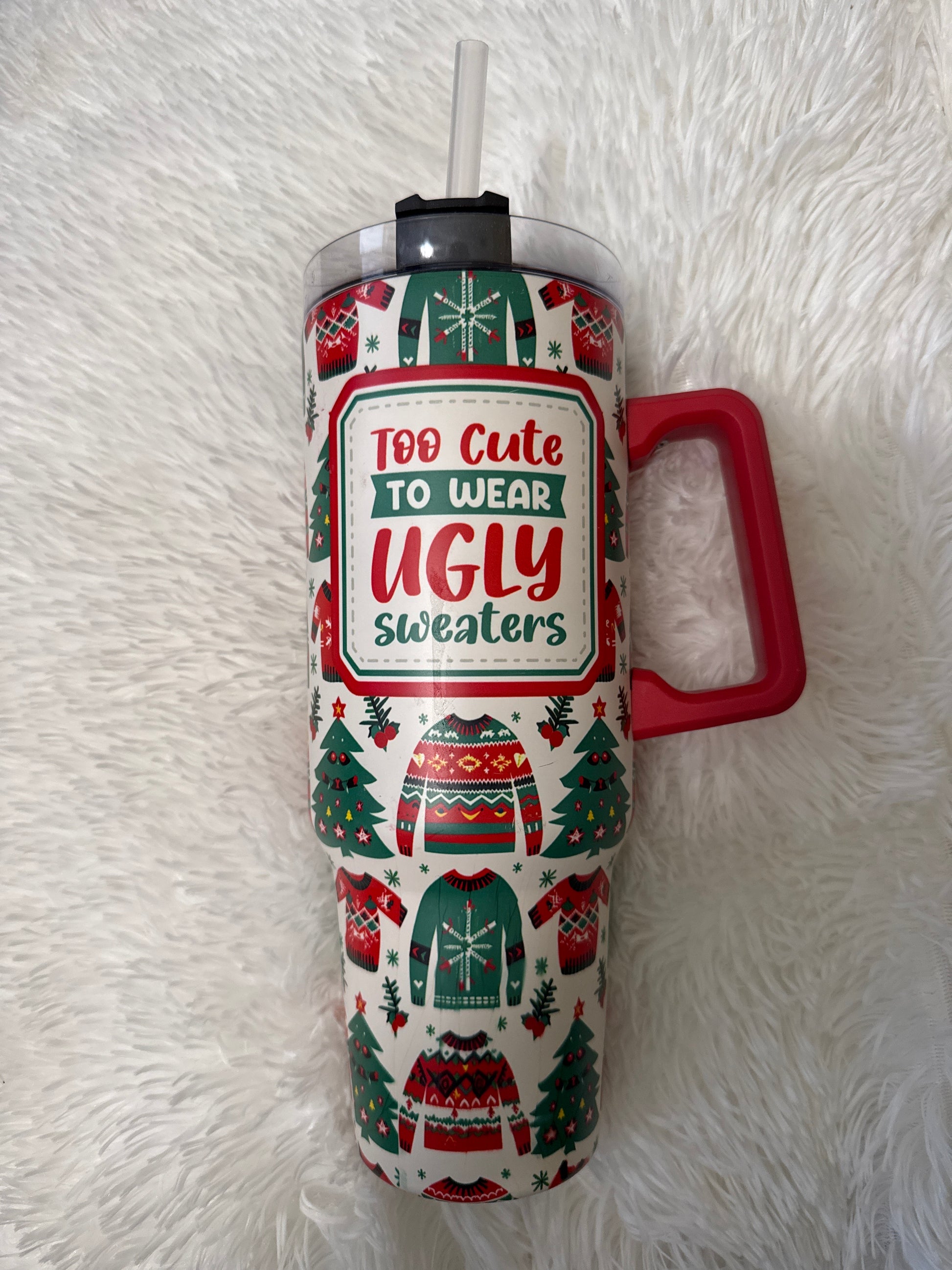 Elevate your beverage game with our 40oz Insulated Cups! The coolest way to show your seasonal spirits. This copper-insulated, vacuum-sealed stainless-steel cup keeps drinks cold for 18 hours and hot for 7 hours. Includes a straw and spill-resistant lid. Hand wash only. BPA free.Â