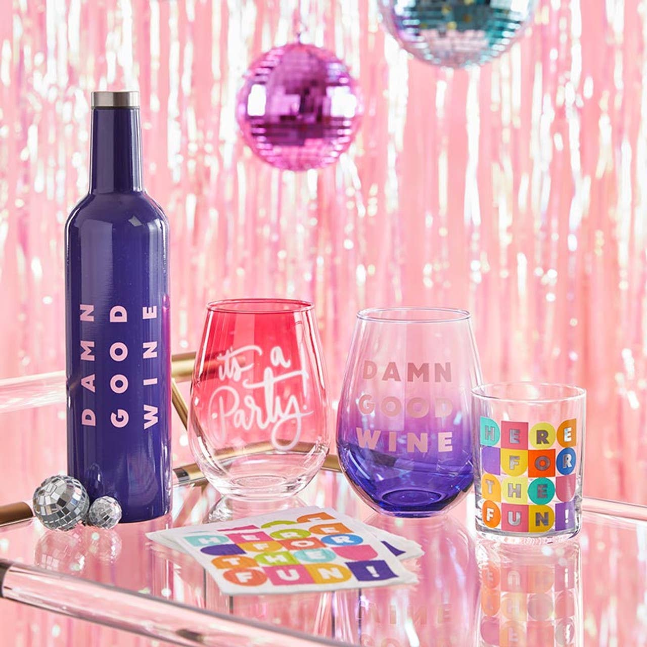 Drink wine in style in this jumbo stemless wine glass! This 30oz glass holds a full bottle of wine.