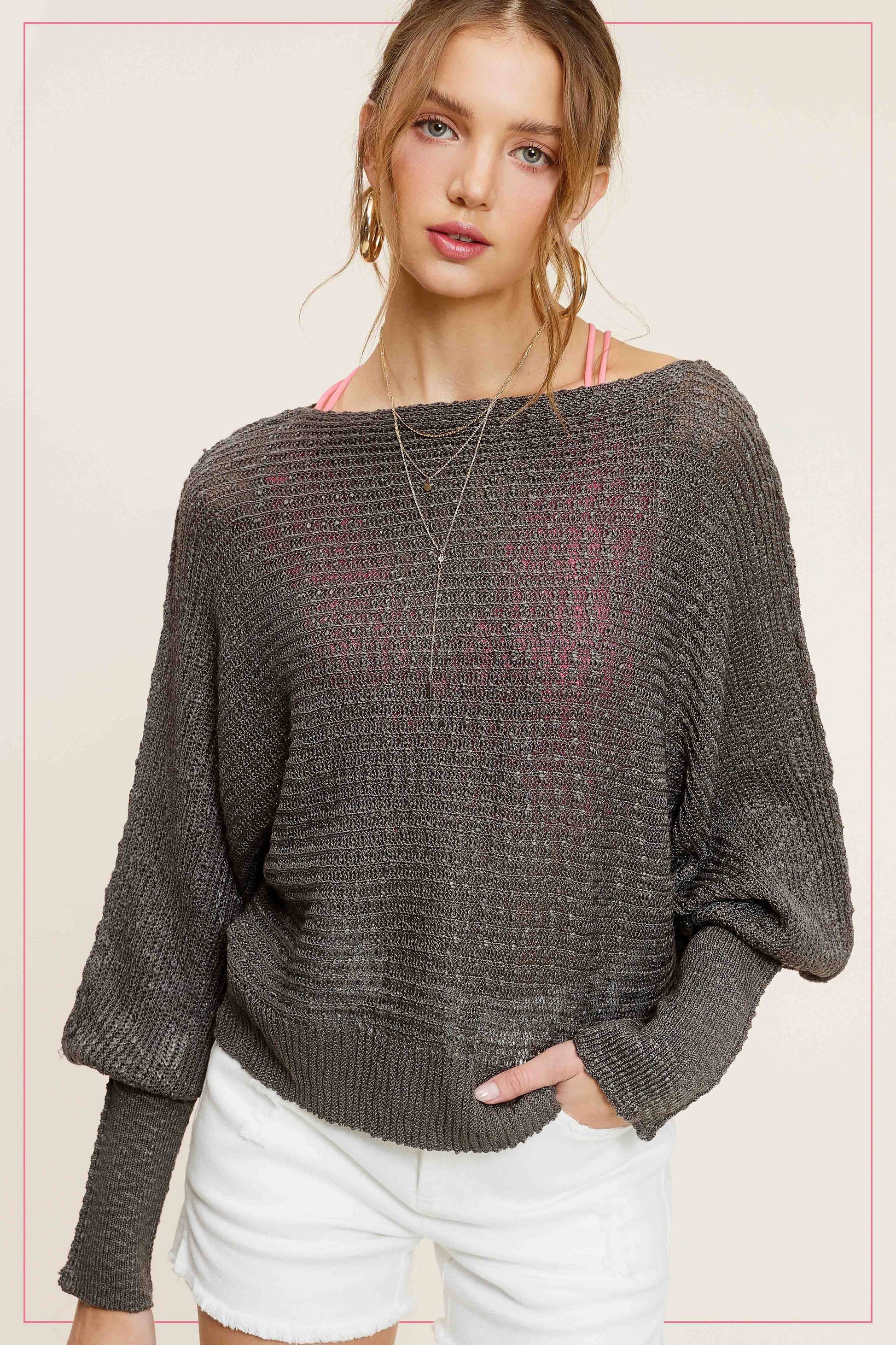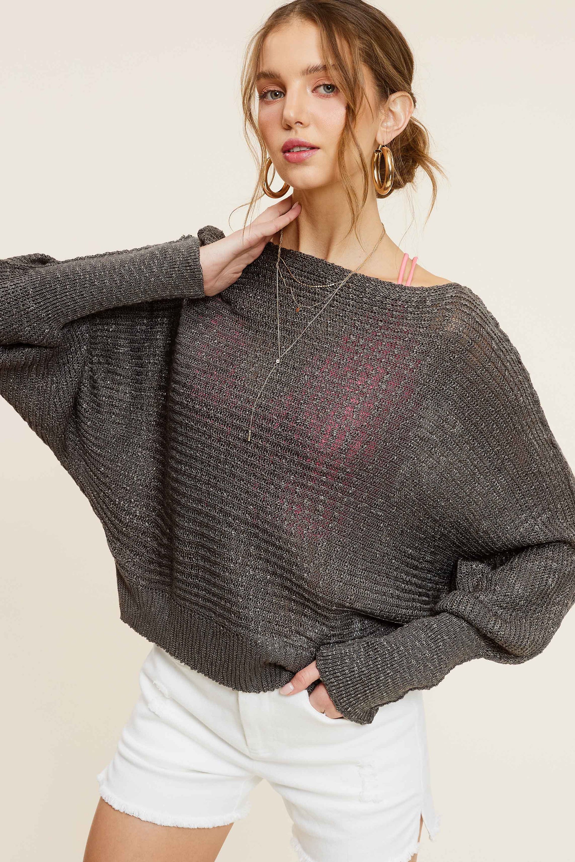 Lightweight Dolman Sleeve Boat Neck Sweater Top