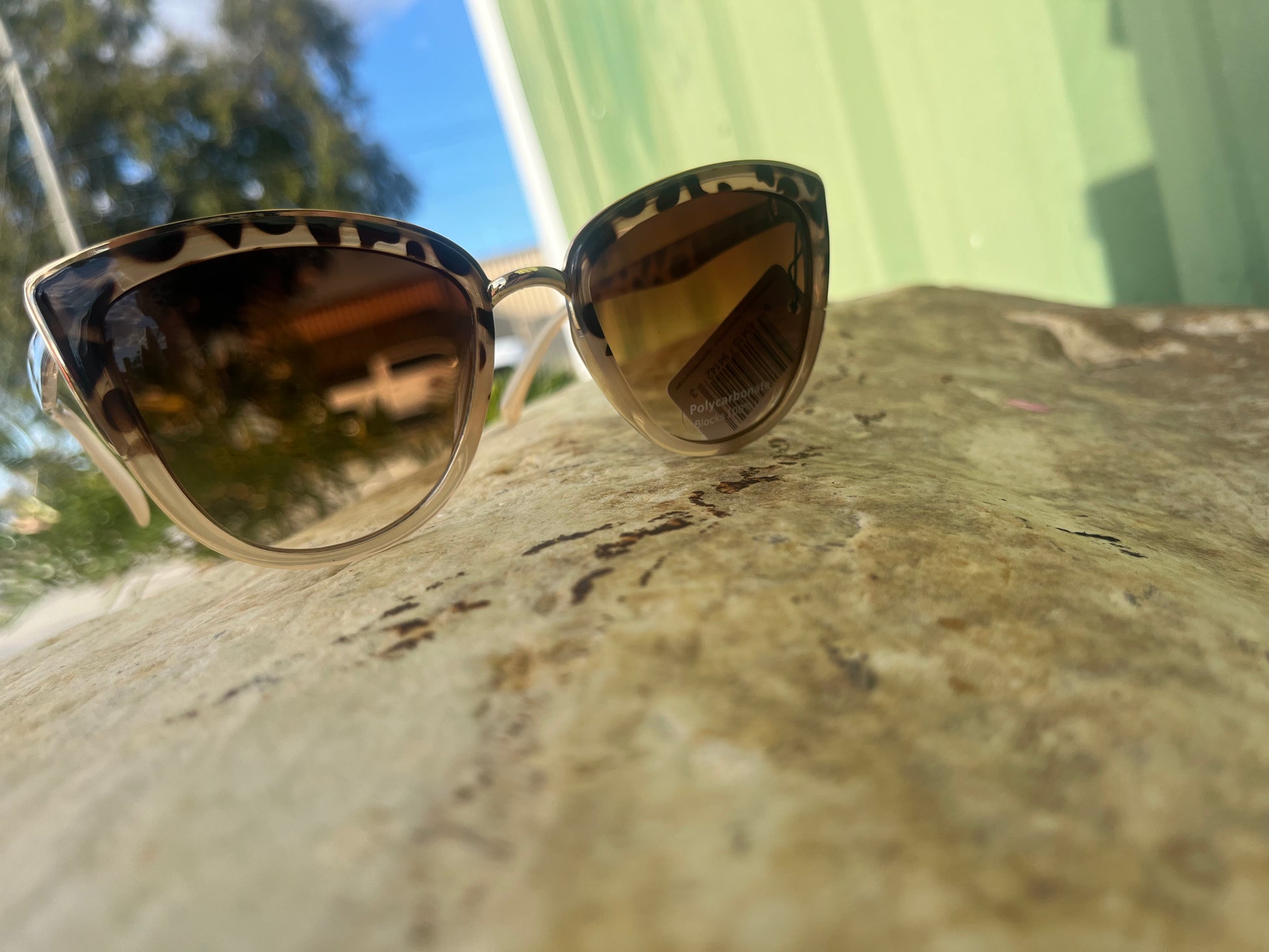 A true work of art, this set of sunglasses adds a distinctive metallic accent cat eye sunglasses set design. A must-have set of sunglasses that effortlessly enhances your style, no matter the occasion. Sunglasses are made with 80% Plastic 20% Metal.