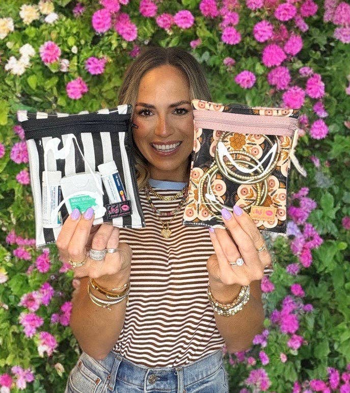 Compact yet spacious at 5.25" x 6.5", it fits easily in your bag while keeping your items neatly in place. Ideal for travel, gym sessions, or day-to-day errands—this pouch brings both function and flair to your on-the-go lifestyle.