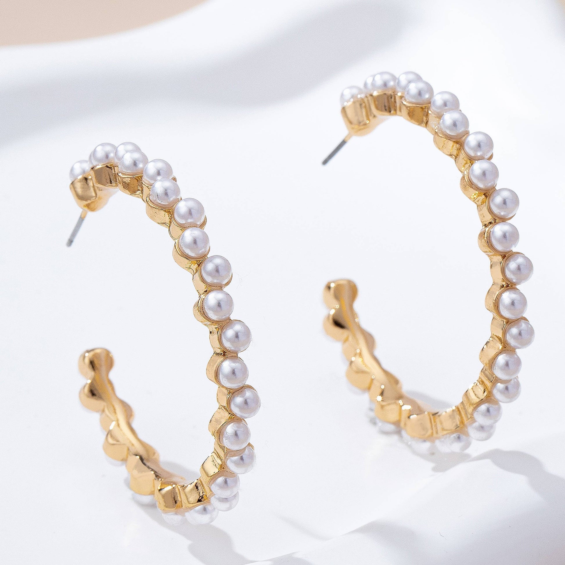 Oversized gold-tone hoops crowned with a luminous pearls make a dramatic statement. Bold yet refined, this pearl hoop earring delivers high-impact elegance-perfect for the modern minimalist with a taste for the extraordinary.