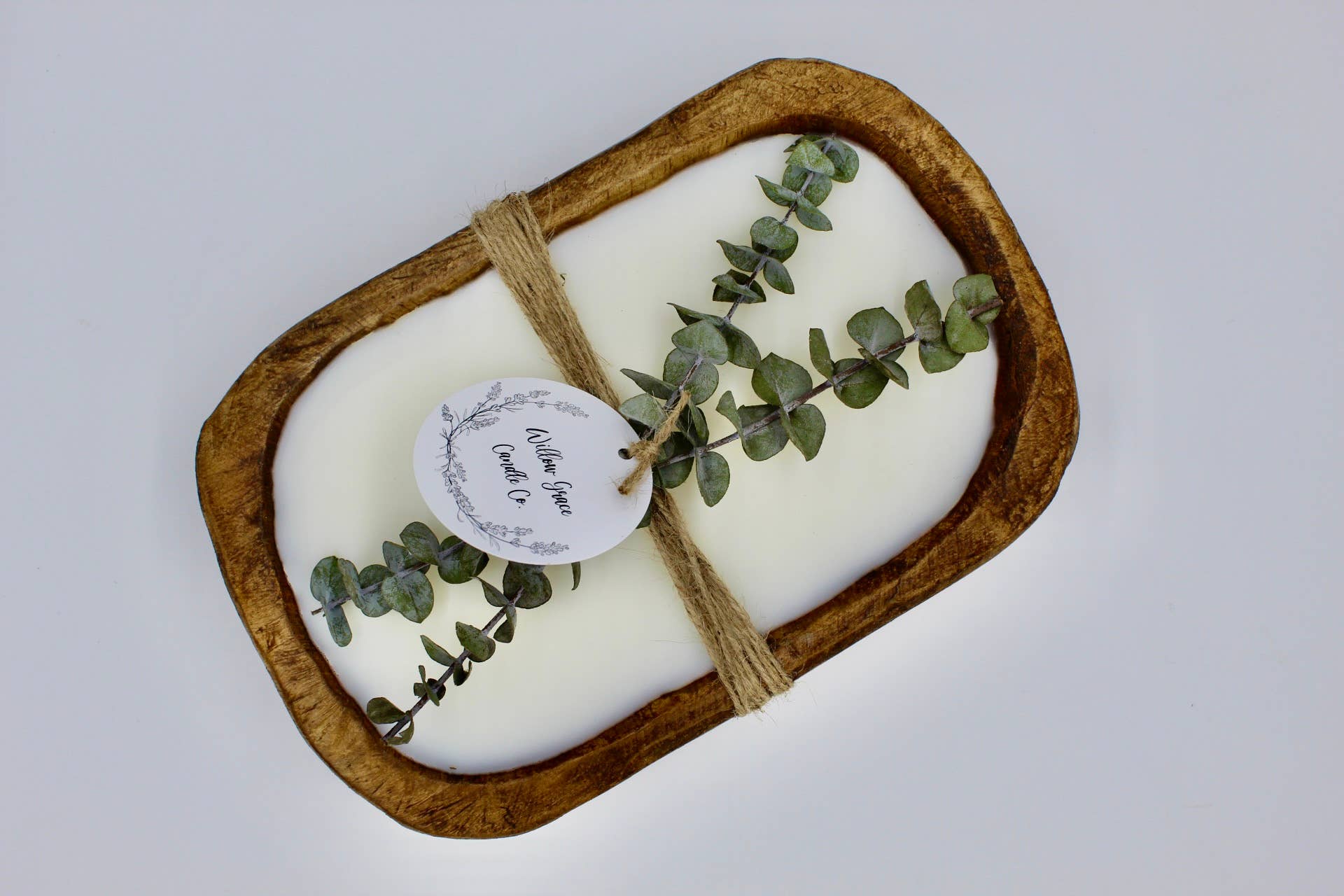 Each candle measures 9.5"x5"x2.5"- Size will vary with each bowl as they are handmade + hand carved