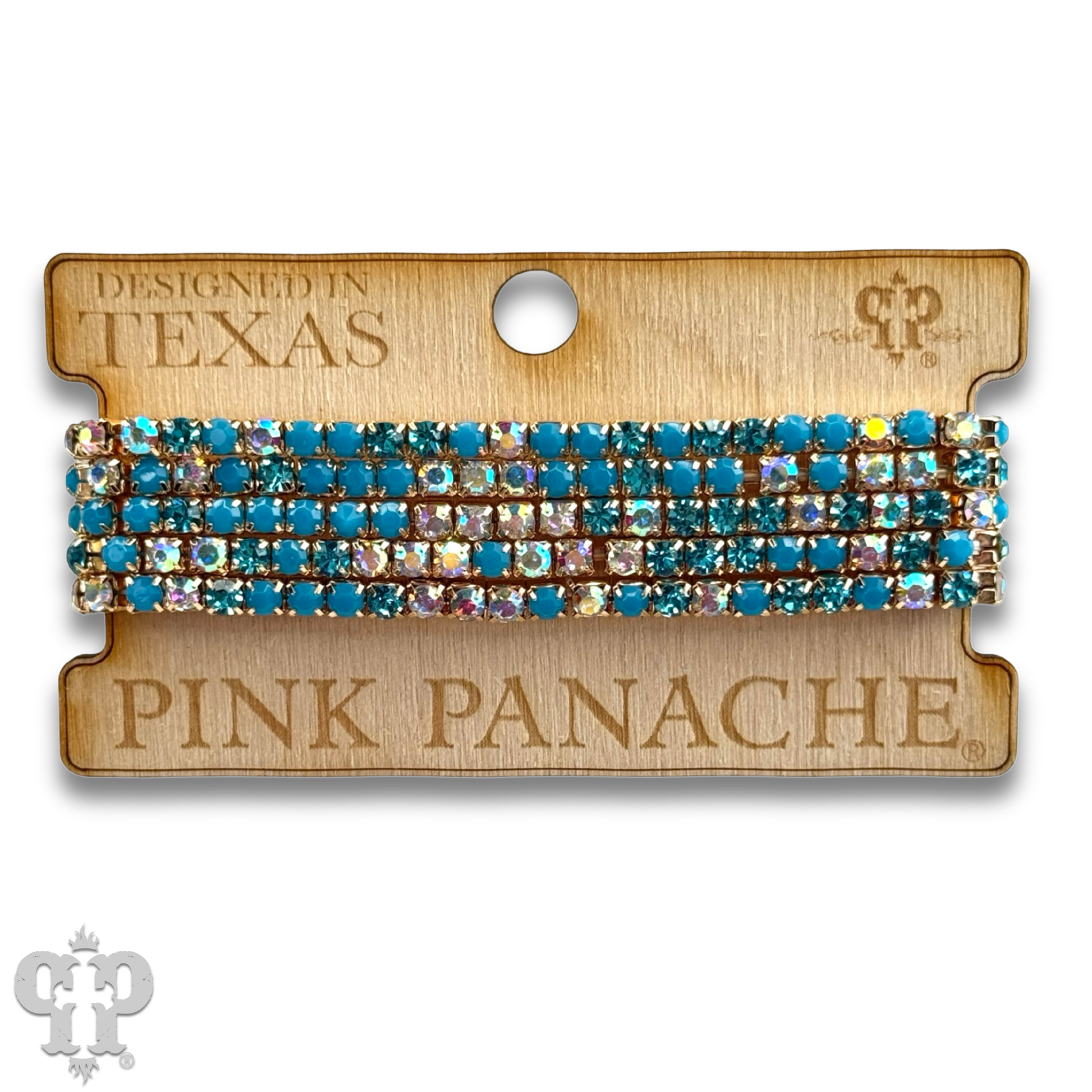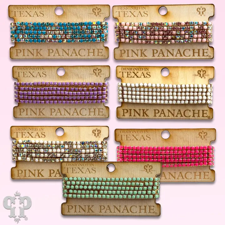 This bracelet set has five strands of prong set rhinestone beads. It adds a touch of glam to any casual look.