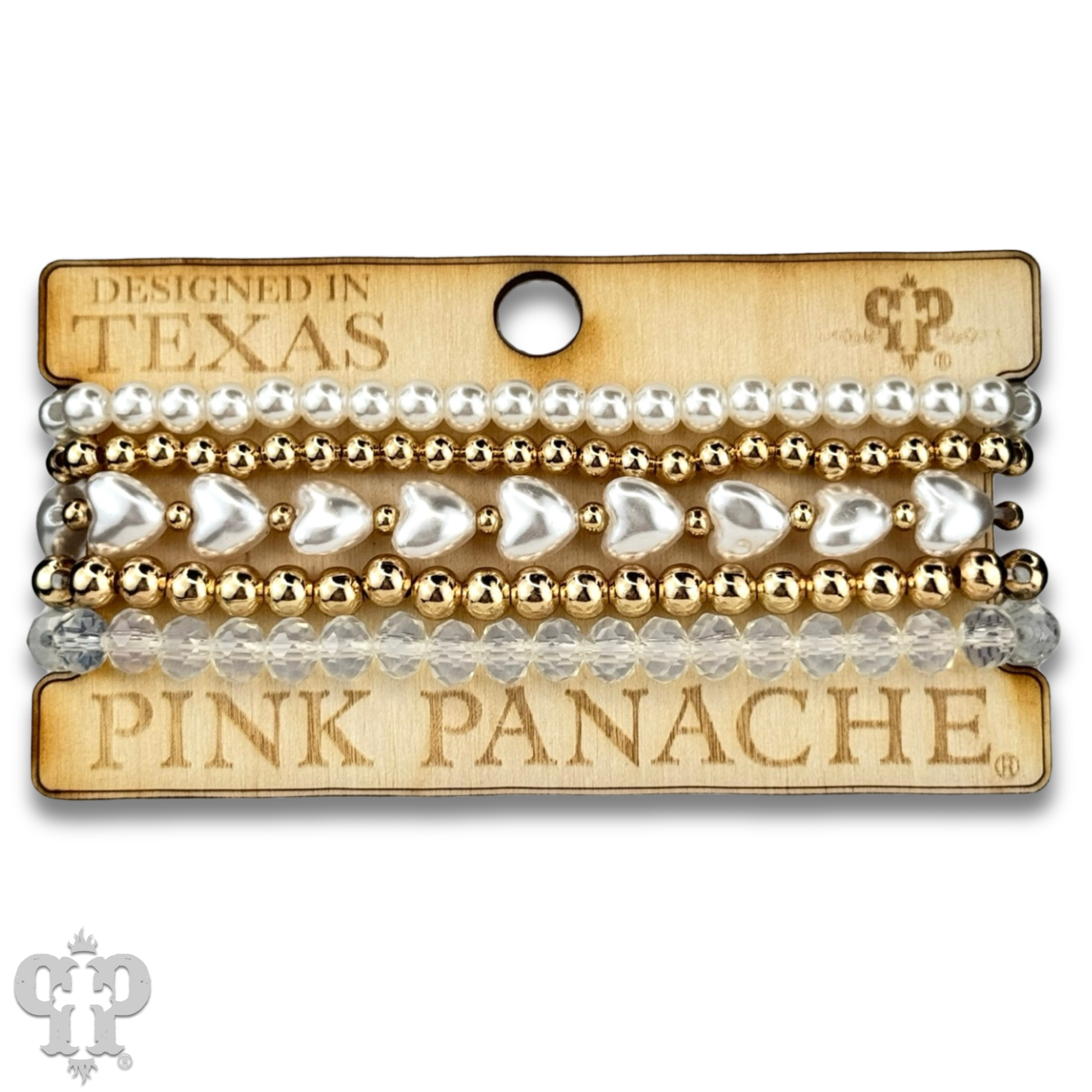 The Puffed Heart Acrylic Pearl Bracelet features a strand of charming puffed heart design acrylic pearls. Along with glass and gold tone beads, this stretch bracelet fit effortlessly with your unique sense of fashion.