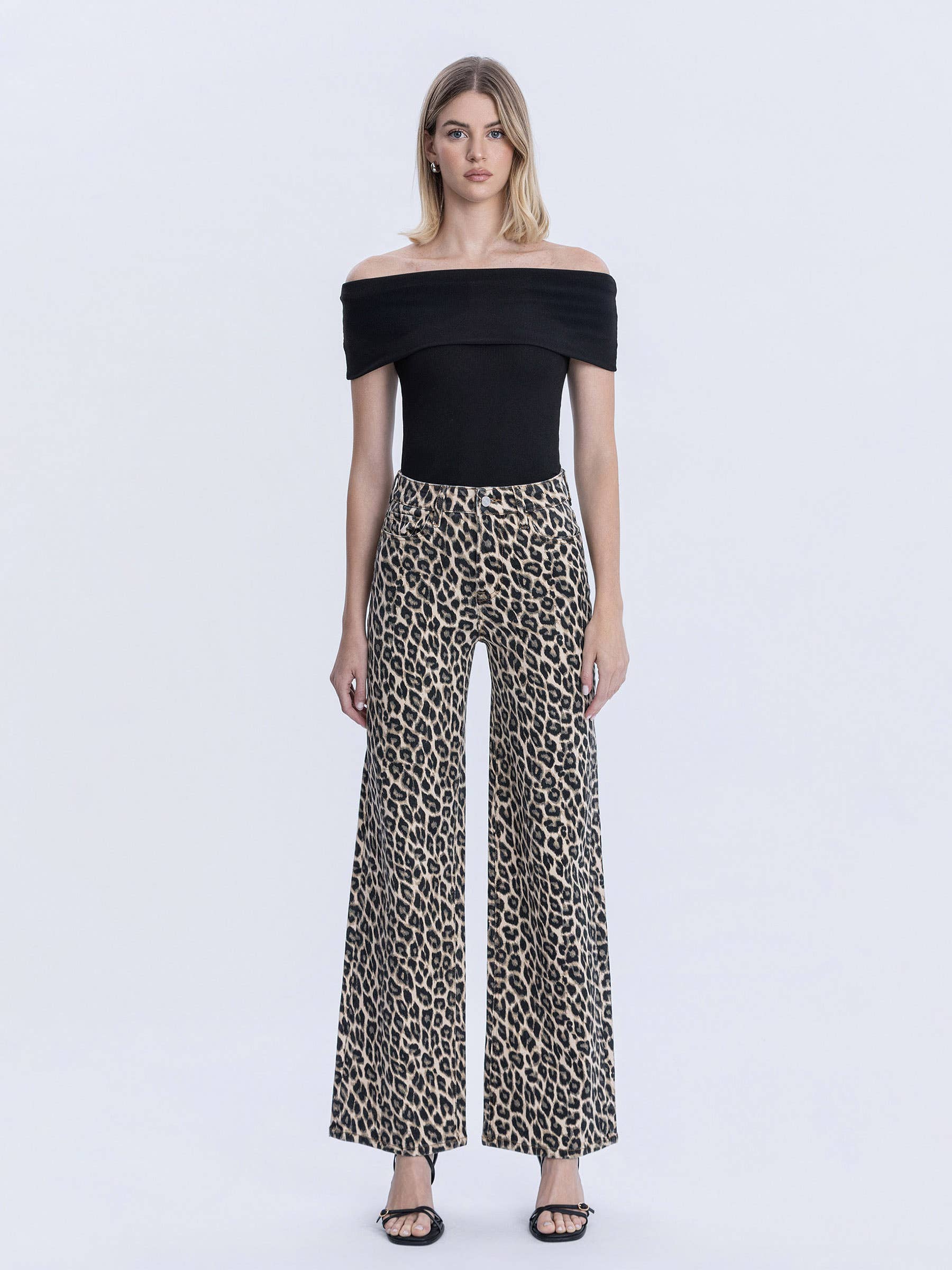 SUPER HIGH RISE LEOPARD PRINT WIDE LEG JEANS LV2000LPD